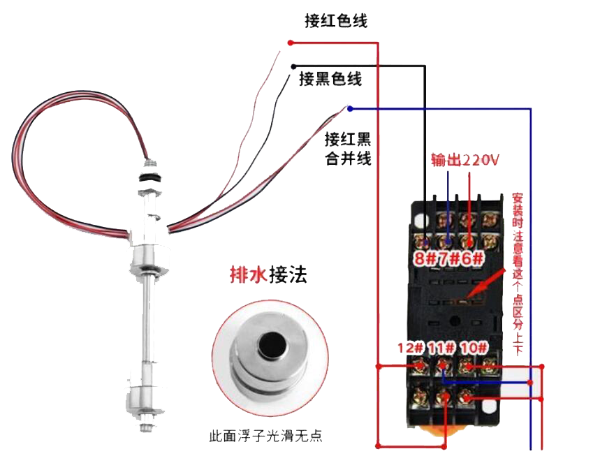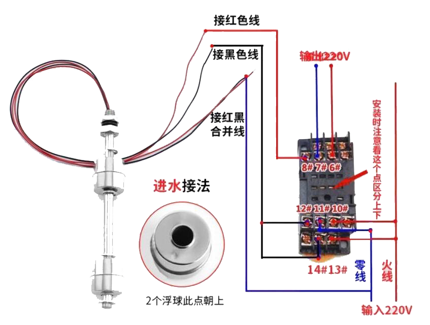 排水接法只需將黑色接8#,紅色接12#14#,并把浮球調成常開的就可以,其他均不變。