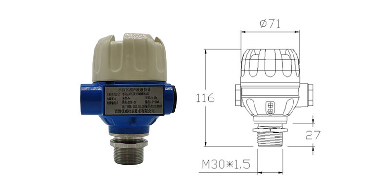 小盲區(qū)超聲波液位計尺寸圖 |