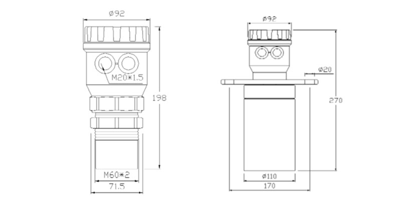超聲波液位計是由傳感器(換能器)發(fā)出超聲波脈沖,聲波經(jīng)液體表面反射后被同一傳感器接收或超聲波接收器,通過壓電晶體轉(zhuǎn)換成電信號,根據(jù)聲波的傳播時間與聲波發(fā)出到物體表面的距離成正比,并由聲波的發(fā)射和接收之間的時間來計算傳感器到被測液體(固體)表面的距離。 |