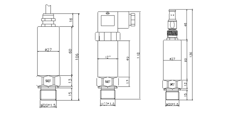 緊湊型壓力變送器尺寸圖 |