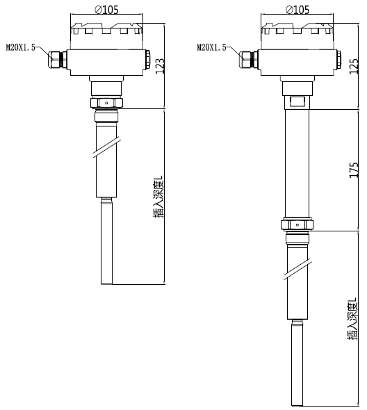 L+ N-:電源輸入端電源輸入端+8/16mA電流信號輸出端